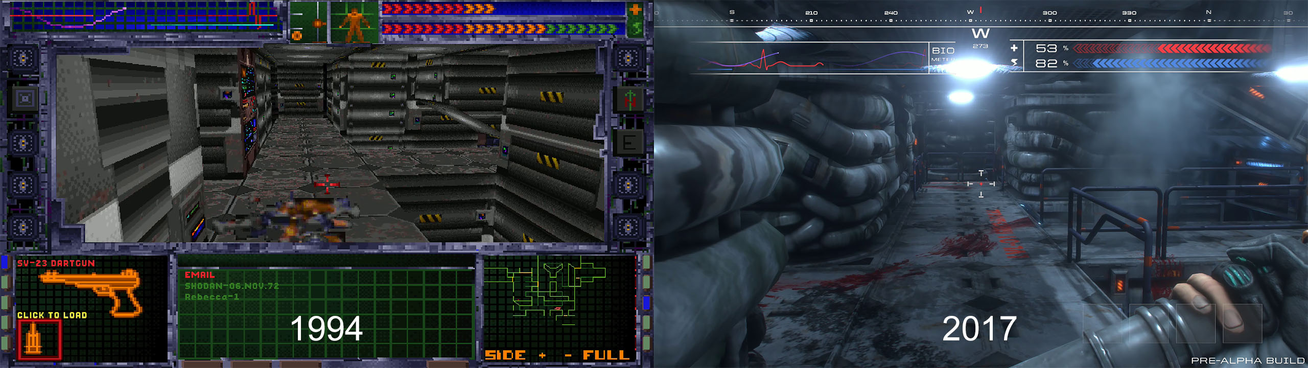 C’est dans l’optique de redonner un coup de jeune au jeu original qu’une campagne Kickstarter a été lancée fin juin 2016 par cette même équipe, avec l’aide d’anciens développeurs du premier System Shock (Looking Glass Studios). Ce sont pas moins de 21 625 contributeurs qui ont permis à Nightdive Studios de collecter 1 350 700 $.Pour assurer les contributeurs du sérieux de leur projet, Nightdive Studios a mis en ligne une courte démo jouable gratuite sur Steam, GOG, et Humble Store (attention, disponible seulement sur Windows actuellement, et un PC puissant est nécessaire pour espérer le faire tourner correctement). Il s’agit d’une démo pré-Alpha, c’est à dire pas totalement optimisée et pouvant comporter des bugs plus ou moins importants.