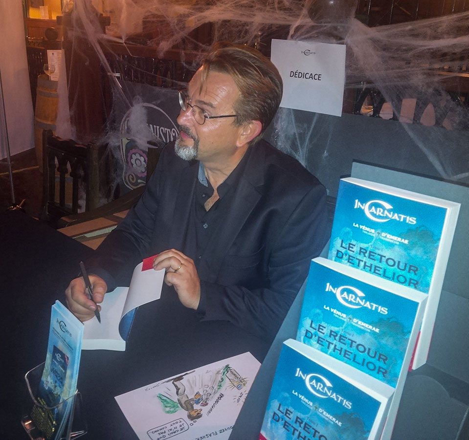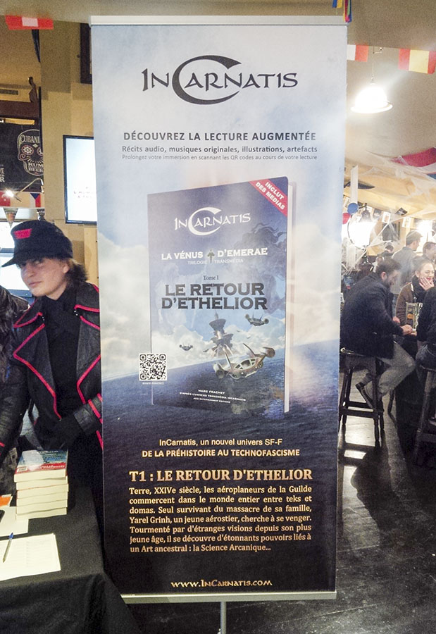 Nous avons été conviés le 15 octobre dernier à la soirée de lancement du premier tome de l’univers transmédia InCarnatis, au Corcoran’s Irish Pub, porte des Lilas. Intitulé Le retour d’Ethelior, et publié chez ACCI Entertainment éditions, ce premier volume de la trilogie du « cycle de la Vénus d’Emerae » sortira le 22 octobre. C’est ce que l’on pourrait appeler un projet de vie pour Marc Frachet, à l’origine de cet univers mûri depuis près de 30 ans, et représentant environ 6 années d’écriture. Mais penchons-nous avant tout sur le concept de transmédia…