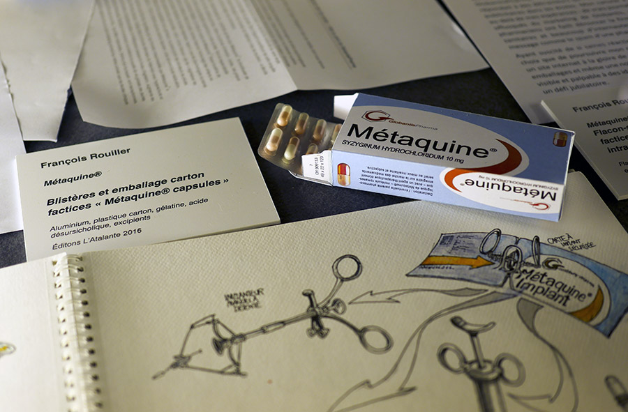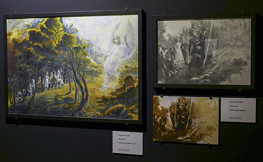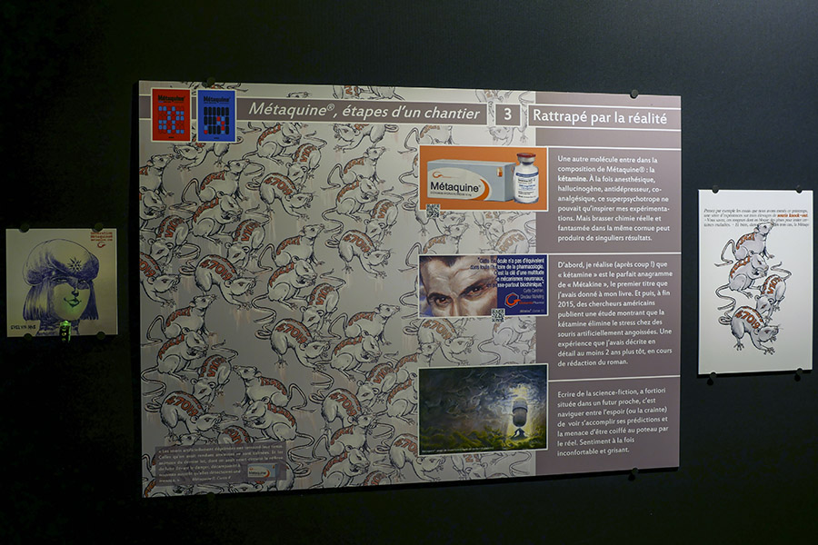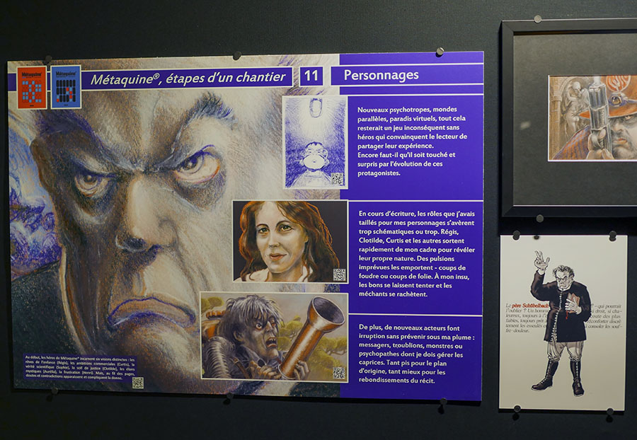 L’expo Métaquine® (du livre de sf du même nom, aux éditions L’Atalante) proposait de découvrir le cheminement artistique et intellectuel de François Rouiller, son auteur, à travers des esquisses, croquis, peintures et objets tirés de son univers :