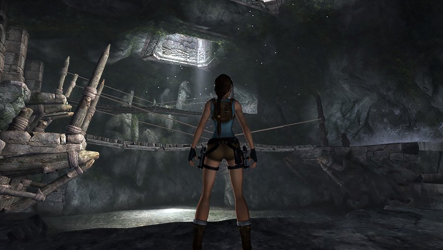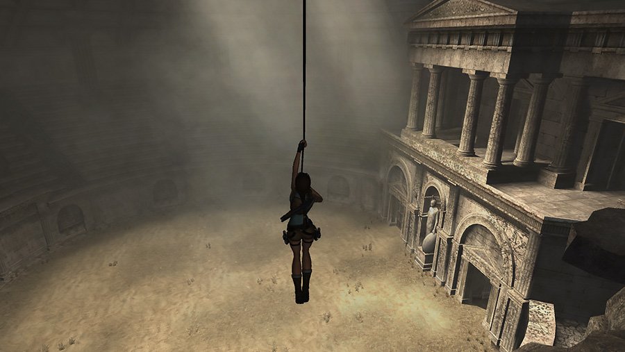 Qui dit nouvelle génération, dit mise à jour graphique. Et Tomb Raider en avait bien besoin ! Avec un tout nouveau moteur graphique et une toute nouvelle maniabilité, Tomb Raider Legend, le 1er épisode d’une nouvelle trilogie, avait fait sensation en 2006. Tomb Raider Anniversary a donc logiquement repris les éléments positifs de l’épisode précédent. Le scénario est similaire au jeu original, avec quelques ajouts de détails par-ci par-là, tout en profitant au passage d’une refonte quasi totale de l’architecture des niveaux, assez intelligemment repensée. Cela permet d’exploiter les nouveaux mouvements mis a disposition de Lara, comme l’utilisation d’un grappin pour se balancer contre les murs, les sauts d’une poutre à une autre, etc. Les sauts sont d’ailleurs simplifiés et facilités, puisqu’il suffit désormais de sauter en direction d’un rebord pour s’accrocher automatiquement. Certains nouveaux mécanismes et de nouvelles énigmes sont aussi présents, comme des blocs qui servent de leviers pour activer une porte, ou des cibles à viser. Bref de ce côté-là, Tomb Raider Anniversary renouvelle agréablement le jeu original. D’autant plus qu’on peut trouver quelques bonus à débloquer (musiques, costumes, etc.), absents de l’original. Notons enfin l’excellent niveau de la maison de Lara, qui permet une sorte de chasse aux trésors à l’intérieur et à l’extérieur de la bâtisse.